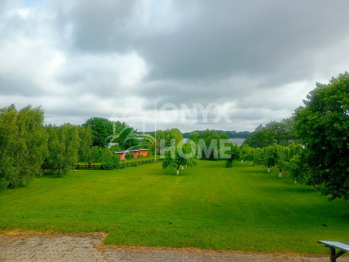 Posesja ogrodzona od strony dróg gminnych, na terenie działki znajduje się dobrze utrzymany starodrzew. Widok na jezioro z każdego miejsca działki oraz z pomieszczeń głównego budynku.